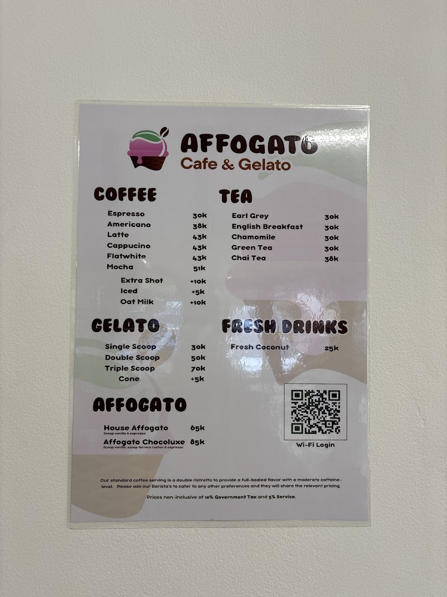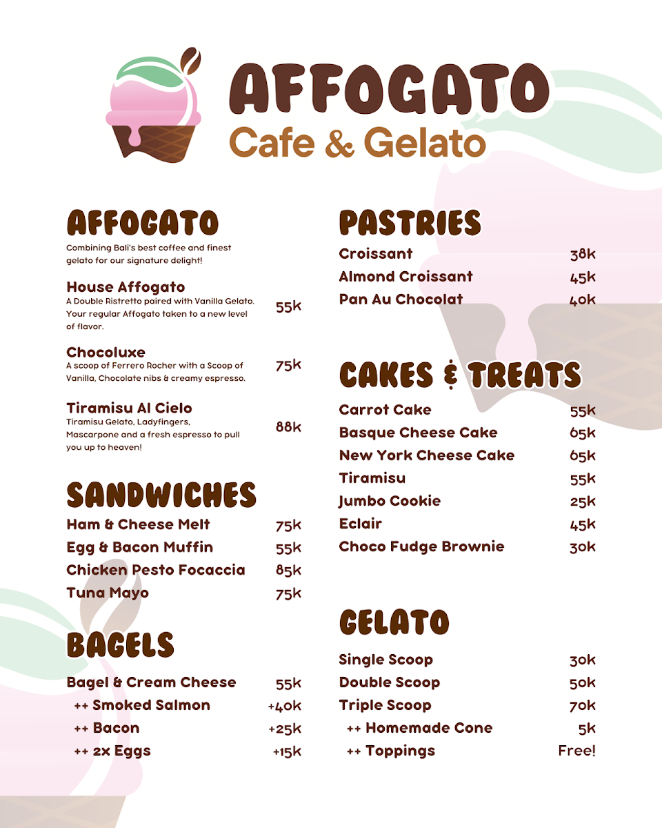 Affogato: Cafe & Gelato Menu